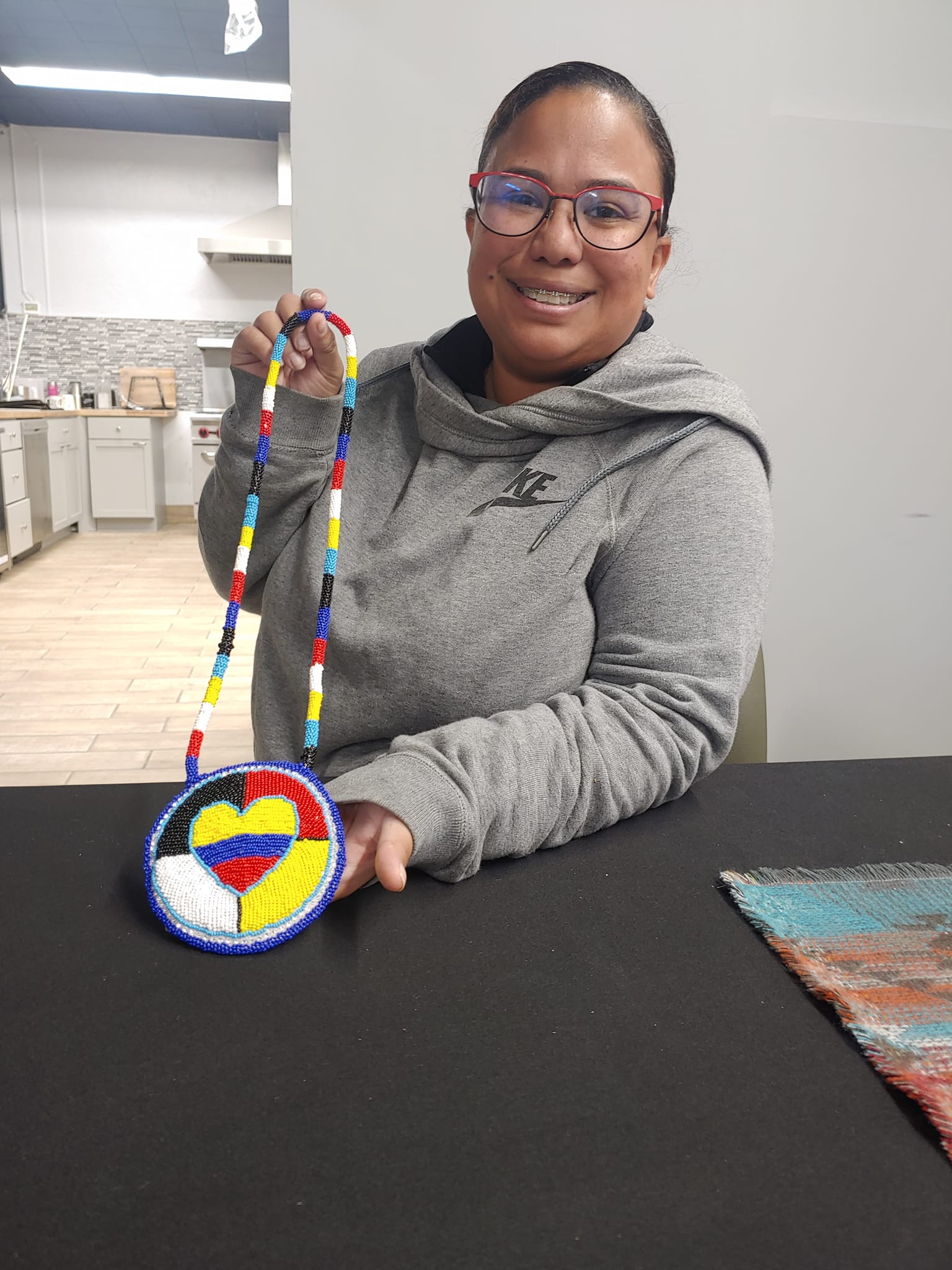 Best of all, our classes are completely free of charge, with all basic materials provided. Regardless of your background, these sessions are open to everyone in the community. You don’t need to be of Native descent to participate – all are embraced and encouraged to join our wonderful beadworking community.